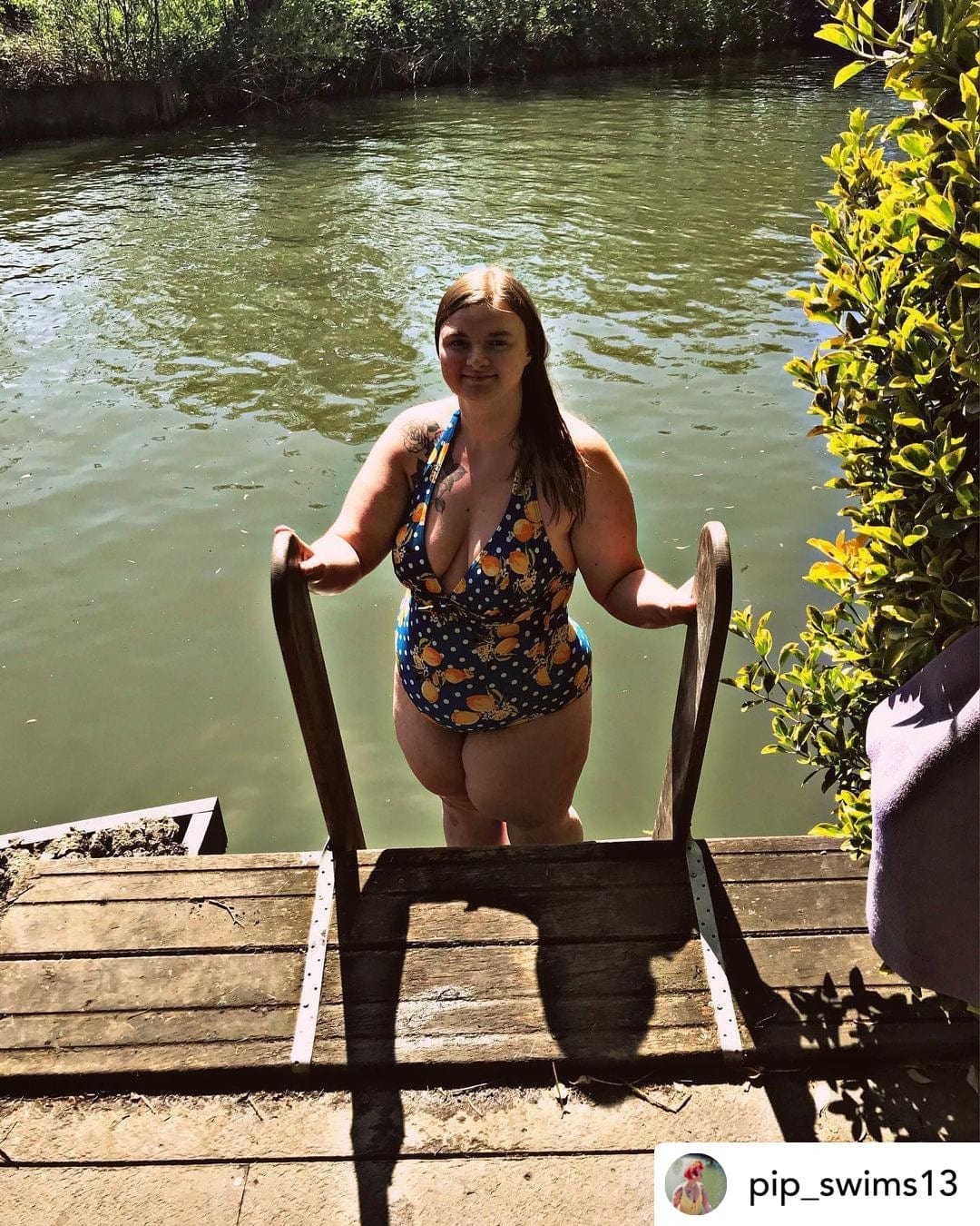 Pip is a cold water outdoor swimmer and says this is her favourite swimsuit. She took it to Finland recently.
