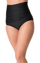 These simple swimsuit bottoms are truly versatile and undeniably flattering. They’re made of a comfortable, high quality material in a full coverage style with slimming ruching throughout the hips and a waistband that extends all the way up to the natural waist. Because of their High-Waisted style, they also slim the tummy, flatter your hips and add a bit of a boost in all of the right places.