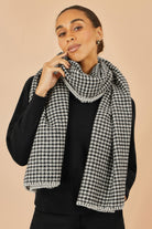Yumi Black Dog Tooth Scarf With Stitch Detail